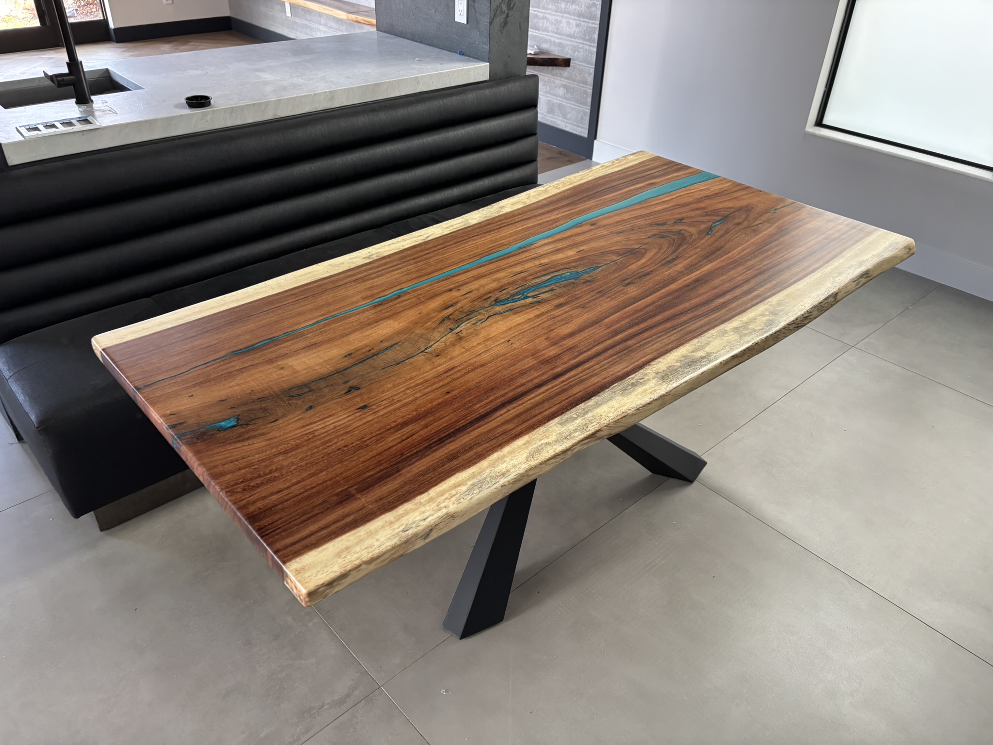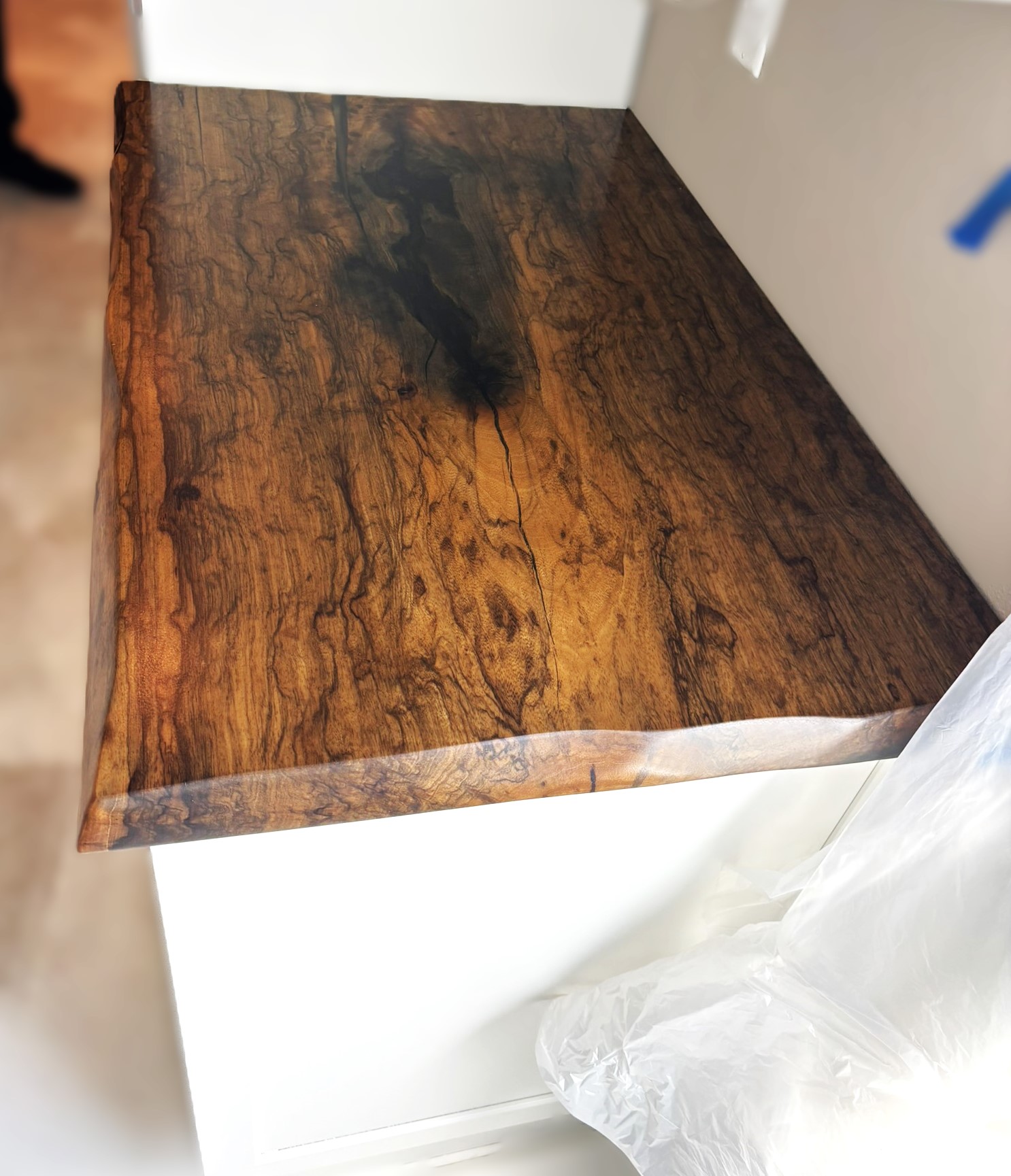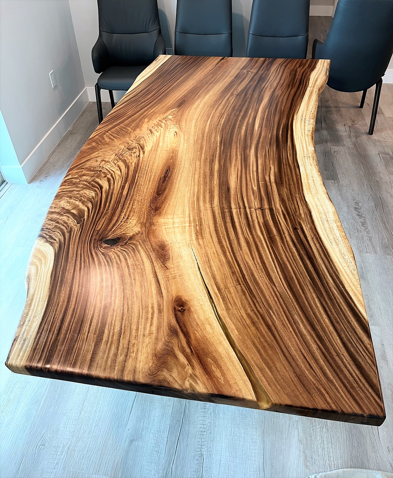 Beyond their aesthetic appeal, our live edge slabs embody a connection to the natural world. Each piece tells a story, allowing you to honor the tree’s life and preserve its legacy for future generations. Live edge slabs are unique pieces of wood that preserve the natural edges. They’re known for their organic shapes and textures, showcasing the wood’s natural beauty, including grain patterns, knots, and imperfections.