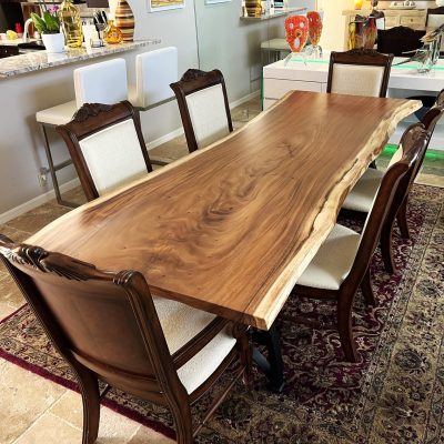 At Naples Live Edge Wood, we believe every piece of wood carries a story. Instead of seeking uniformity, we embrace each slab’s unique features—its curves, knots, grain patterns, and imperfections—that embody authentic live edge design. The result is sustainable, one-of-a-kind live edge wood furniture that elevates interiors and endures for generations.